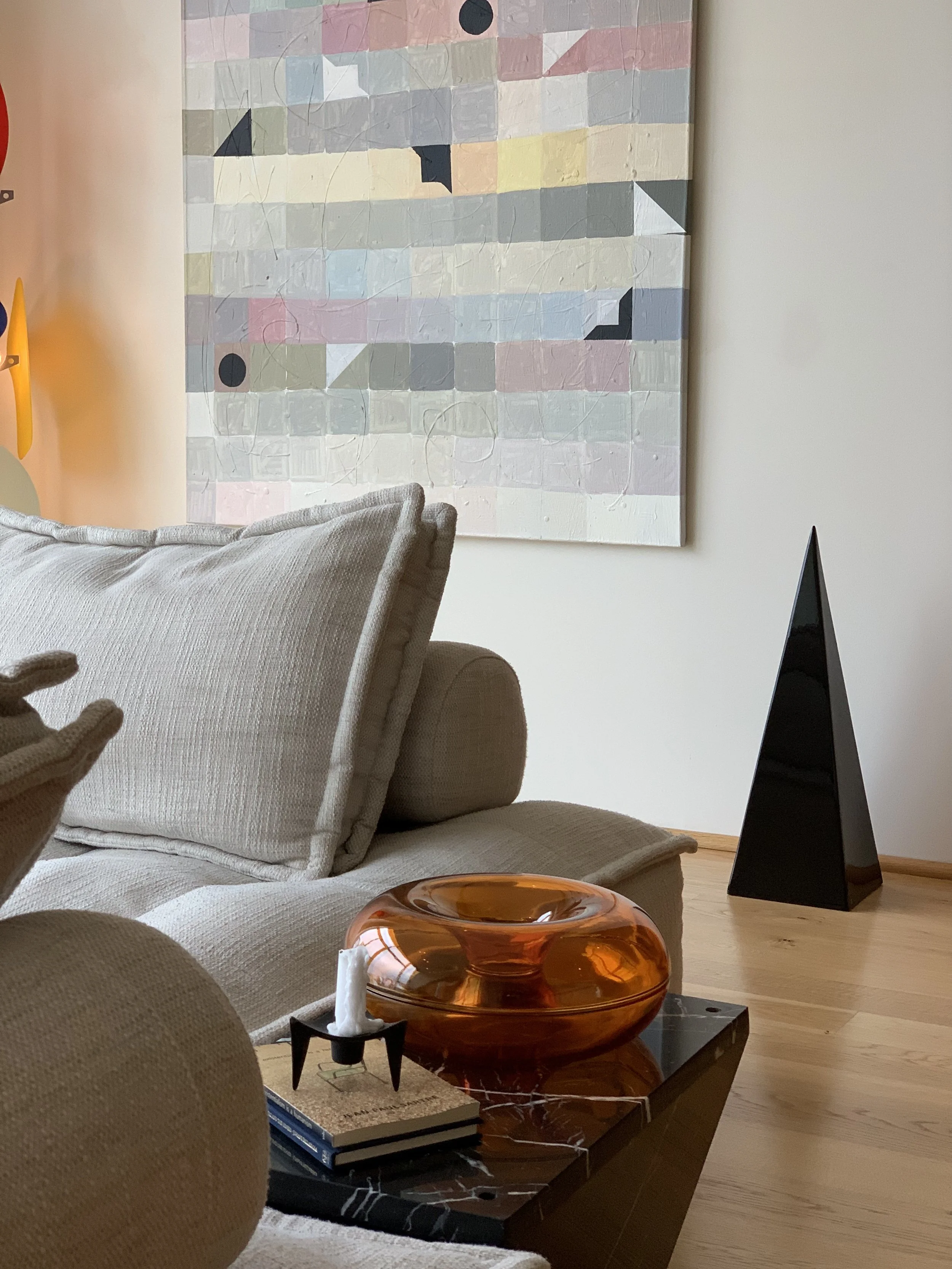 Rooted in the whimsy of Postmodernist design, this project centered on the client’s desire to explore primary forms. A palette of red, yellow, blue, black, and white anchors the space, while repeated motifs - triangles, squares, circles, polka dots, and stripes - bring rhythm and cohesion. The design was meant to nod to childhood: playful and bold, yet grown-up and intentional. The result is a space that balances structure with spontaneity, and nostalgia with a sense of sophistication.